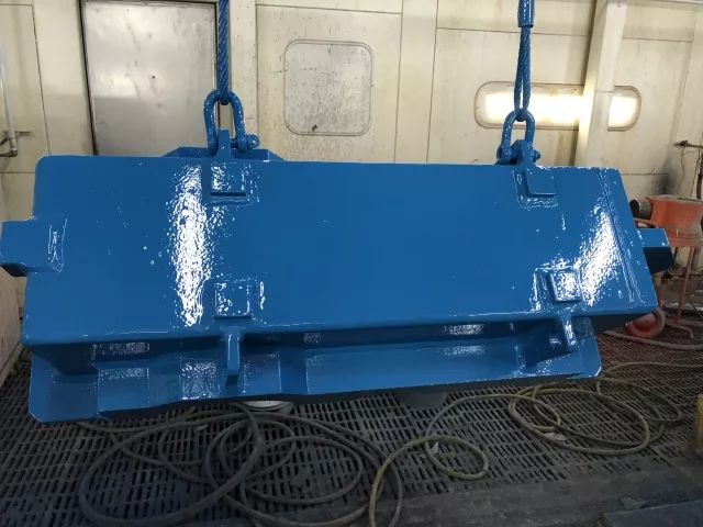 首批次無溶劑涂料在振華南通傳動公司的齒輪箱上進行了施工試點,施工參數(shù)設(shè)定為底漆80μm,中漆150μm,面漆80μm,在不改變生產(chǎn)線現(xiàn)有單組份泵設(shè)備參數(shù)的情況下,順利的完成了三道涂料的施工。涂料施工混合壽命超過2小時。同時,以其無刺激性涂料施工味道的優(yōu)勢獲得了施工工人的好評和認可。整體重防腐涂層體系已經(jīng)通過實驗室1500小時以上鹽霧測試和150天以上的耐化學品測試,整體性能優(yōu)異。