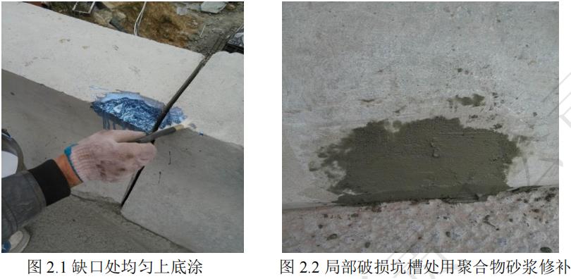 二道工序,底涂一定要浸透缺口處,聚合物砂漿一定要混合均勻,不